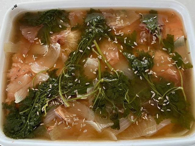 シャケの頭が残ってるからシモツカレ造ってみっかな(^_-)-☆