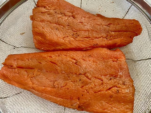 あと少し冷蔵庫内でかわかしたら、煙をかけよう。