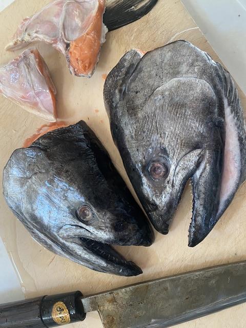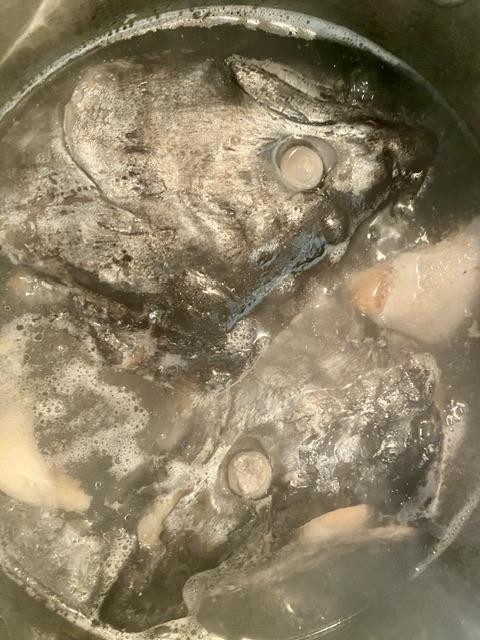 塩漬けしといたシャケを丁寧に洗って頭を割った。
