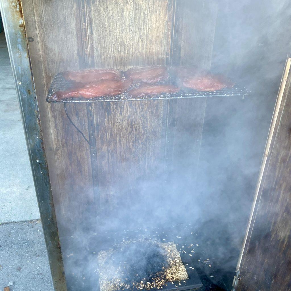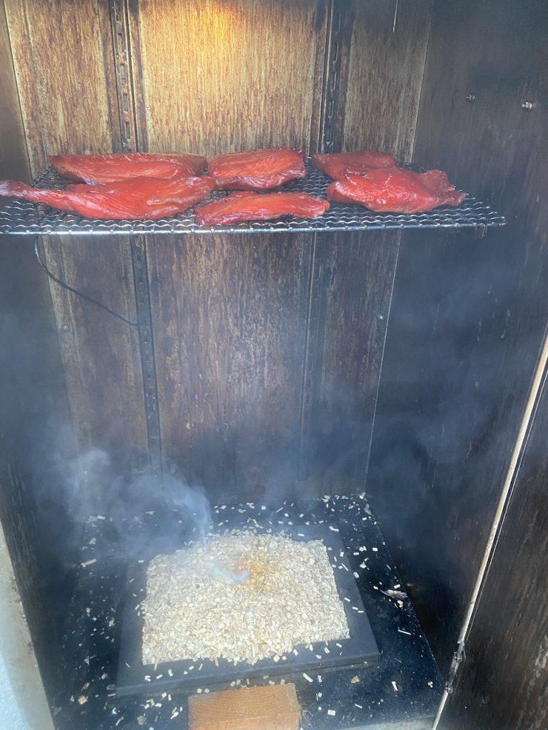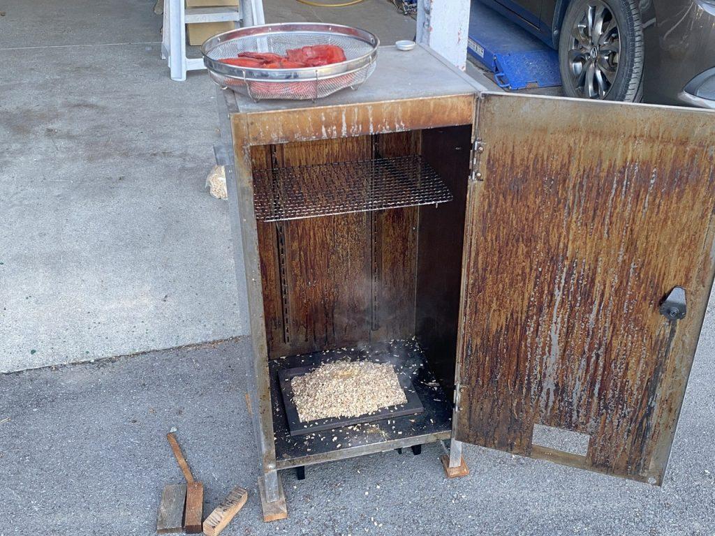 今回のは本末転倒、シモツカレに使った頭と中骨の、残りの身を使って燻製つくるよ。