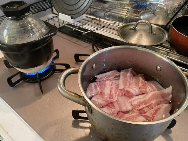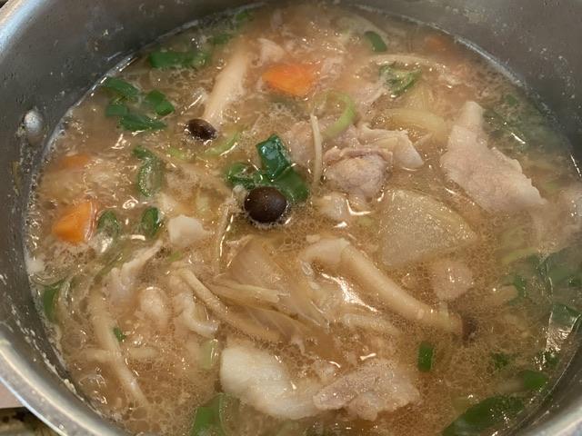 でかける前につけておいたごはんを炊きながら豚汁をこしらえるべ。