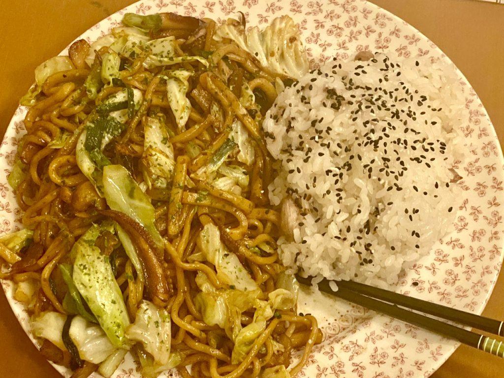焼きそば中毒の発作が起きた。 ピーナツごはん付き。 ちょっと麺を増量したくてう...