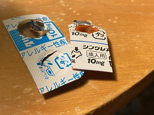 何食べたかなぁ… 夜中、かゆくて目がさめた。 古いけどそれっぽい薬を見つけて飲む...
