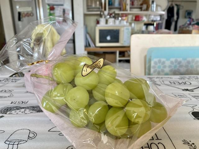 このシャインマスカットは氏家高校の同級生がガレージの屋根の下で育てたやつなん...
