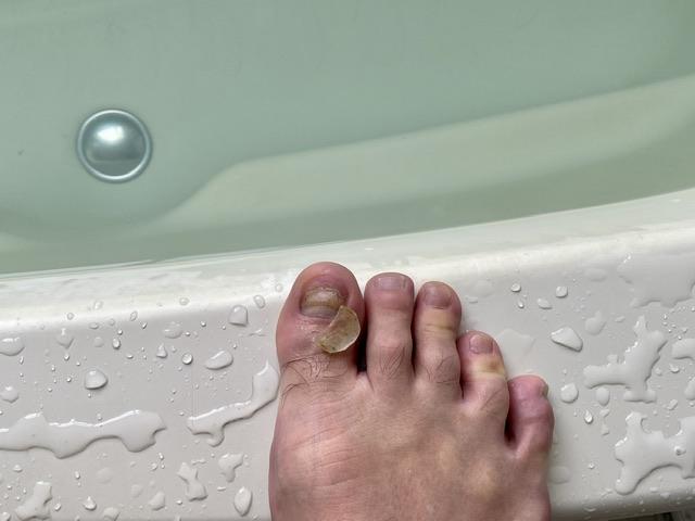 こないだ剥けた右親指。 左もやっぱダメだぁ・・・。 三日月の先から白く濁り盛り...