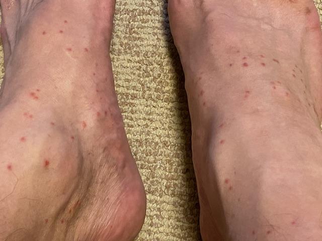 花火見てる時、足がチクチクしてた。 蚊とかブヨじゃないな。 蟻?毛虫??ムカデ...