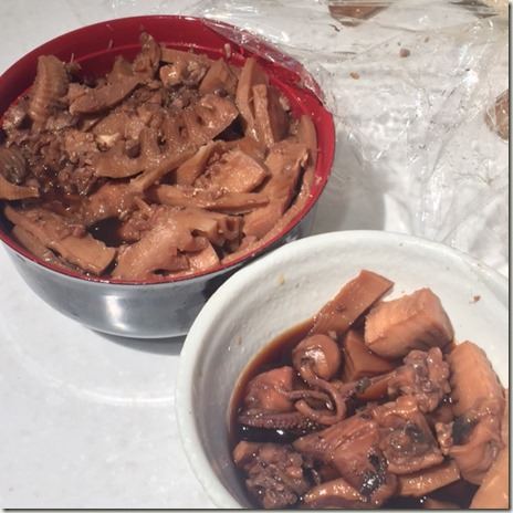 2017-4-21 たけのこ 料理 手前がイカゲソ&エンペラたけのこ。 丼はキンメたけのこ。 キンメダイの頭からは濃厚で高貴な出汁がでた。 ・・・のだけどタケノコに味をつけるには高貴すぎて味がのらない(・_・;) これは薄味でありがたい雑炊系がいいなあ。 イカゲソ&エンペラのほうはバッチリ(#^.^#) 若干イカ焼き風味。 結局どっちも味見しながら煮込んでいたので 最後は味覚が解らなくなり楽しみに今朝食べたら、 ちょっとしょっぱい煮物になってた(T_T)/~~~ 味見は一回でいいのかもしれないなあ。 新しい記事へ 古い記事へ