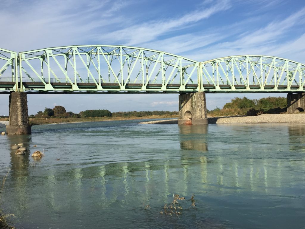 コバルトグリーンの鬼怒川。 石井の鬼怒橋右岸。 きれいだなぁ。