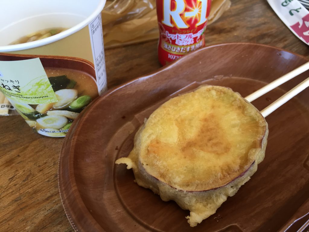 さつまいもの天ぷら。 柔らかくってうっめー。 うちの子らにも教えてやるべ。