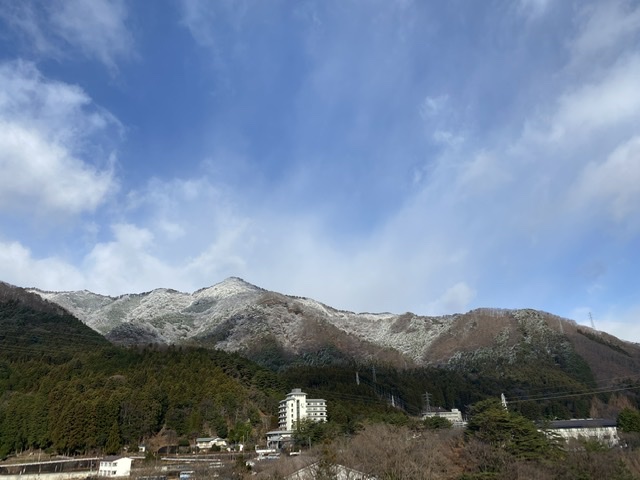 朝起きた山がうっすら白く化粧してた。 鬼怒川温泉。 昨夜は飲んだなぁ。 ...