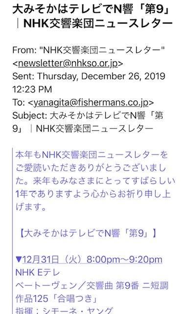 今年は「第九」行けなかった(T_T)/~~~ 年末にパリっとした服着てホールで第九を聴...