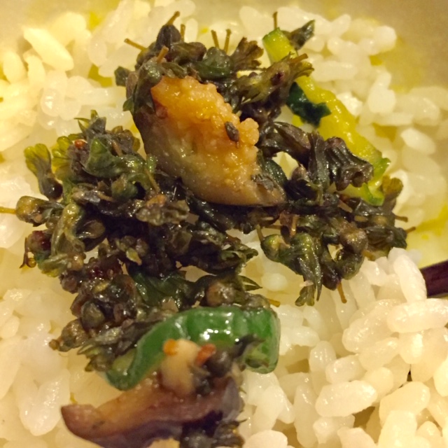 婆さまからもらった漬け物。 シソの実主体に小さく刻んだナスとキュウリ。 ごはん...