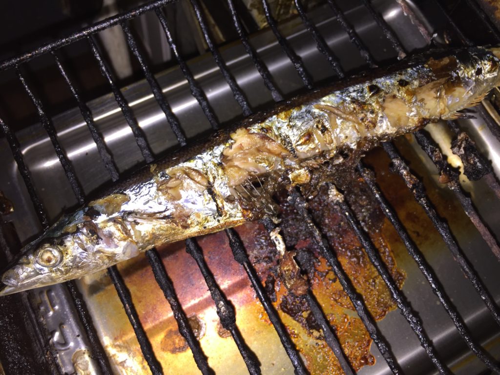 おなか破けちゃった(´・_・`) グリルの受け皿にアブラない…。 今年のサンマは厳しい...