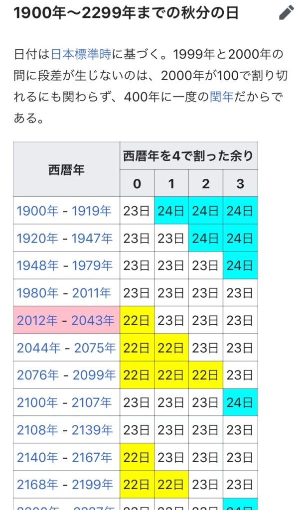 秋分の日って9月23日に決まってるわけじゃないんだね。 まあでもほぼほぼ23日...