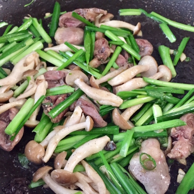 鶏の心臓とニラの炒めもの。(レバニラのパクリ) ハツはさっぱりしてるのでスーパ...