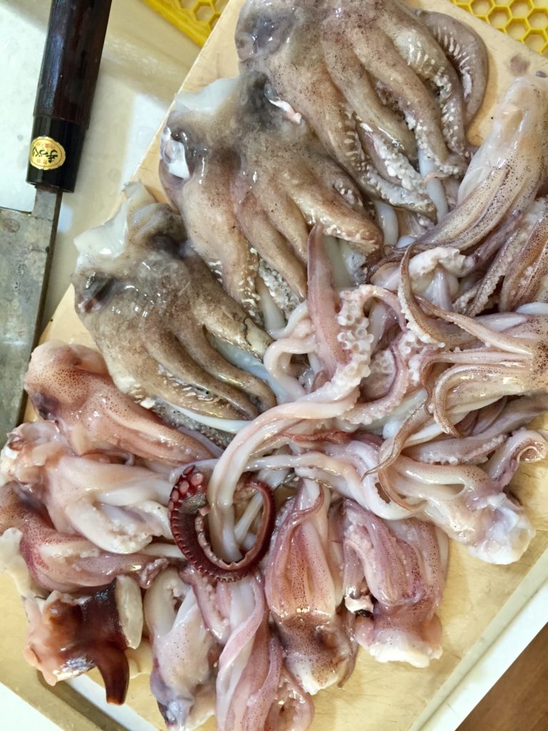 きょうのゲソはゴッツイのが混じってる! うまそう。 エンペラー^ ^ 醤油と酒で煮...