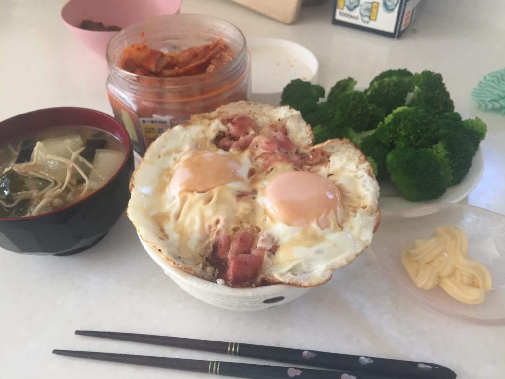 子どもたちの夏休みも終盤。 残暑の中、遊ぶためのガッツリ朝飯。 ベーコンエッグ...