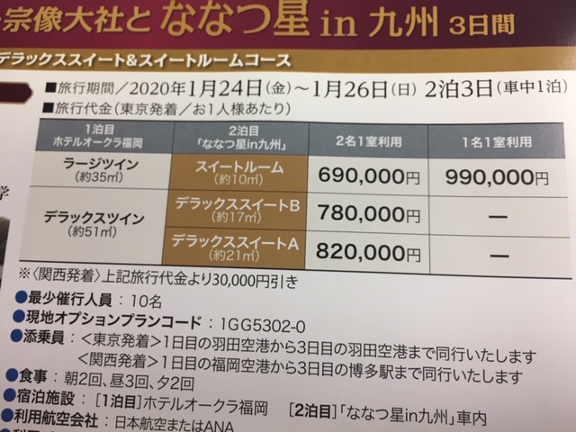 九州2泊3日で99万円? いろんなツアーがあるんだねえ($・・)/~~~