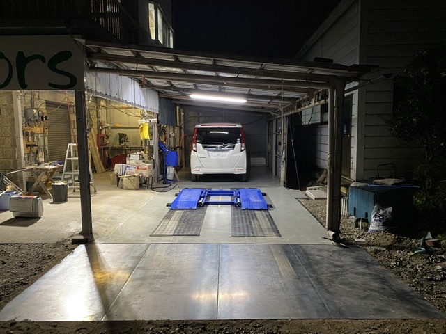 土間にコンクリーをうって、屋根の波板を修理して、リフトを導入\(^o^)/ これで...