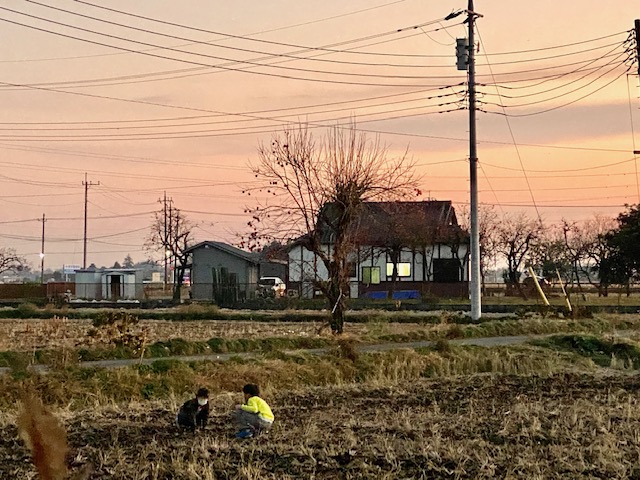 夕焼けの下のたんぼで子供らが遊んでる。 耕したあとを泥だらけで走りまわるのをな...