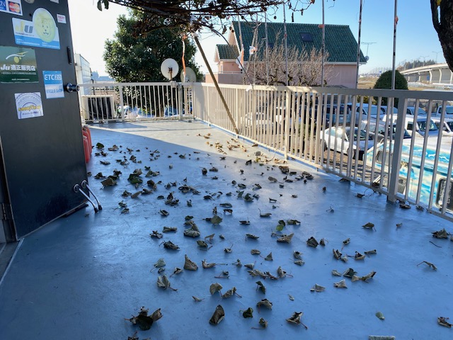 蔵のベランダにきれいにキュウイの葉が落ちた。 風でなくて寒さで落ちた感じ。 い...