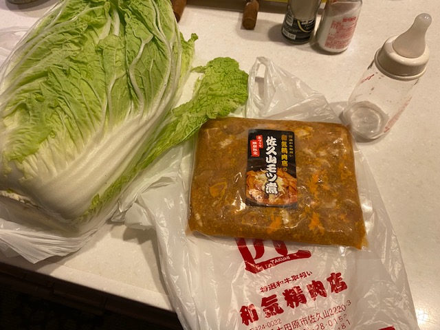 佐久山(大田原)のもつ煮。 うまそう。 白菜もいっしょにもらったので茹でてもつ...