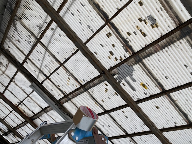 納屋の屋根。 古いのでポリの波板がボロボロ。 ずいぶん前に降ったヒョウと劣化で...