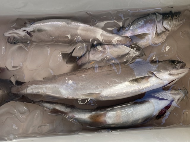 ヒメマス3匹ニジマス1ぴき。 5時から昼過ぎまでやっちゃった☆彡 こうしてみるとニ...