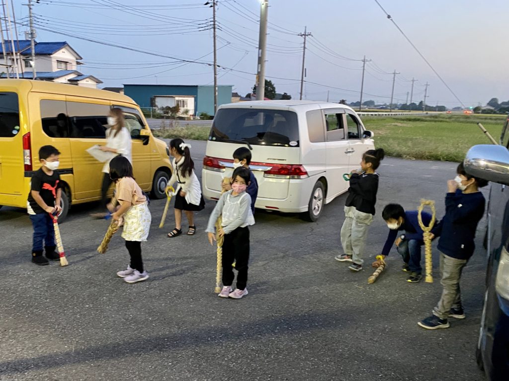 天気予報がはずれて快晴の夕方。 西組のこどもたちが公民館に集合。 十五夜に西組...