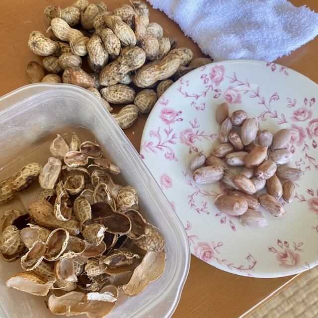 父母が収穫したラッカセイ。 この辺では殻ごと茹でて食べる。 殻をむくのは面倒く...