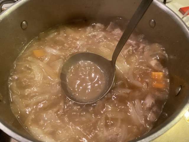 暑いのでカレー(^_-)-☆ 汗をながしながらの このアク取りが好きなんだなぁ。