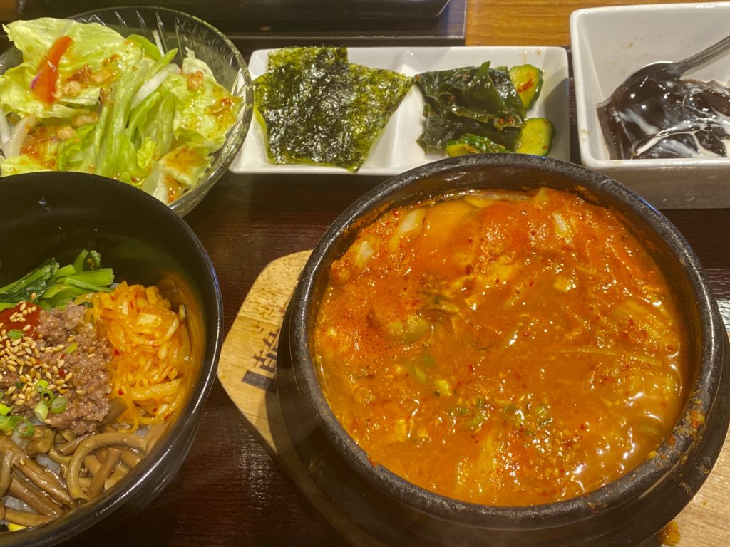 なぜだか((^_−)−☆) 韓味が食べたくて スンドゥブチゲランチ。 あぁーやっぱり旨い...