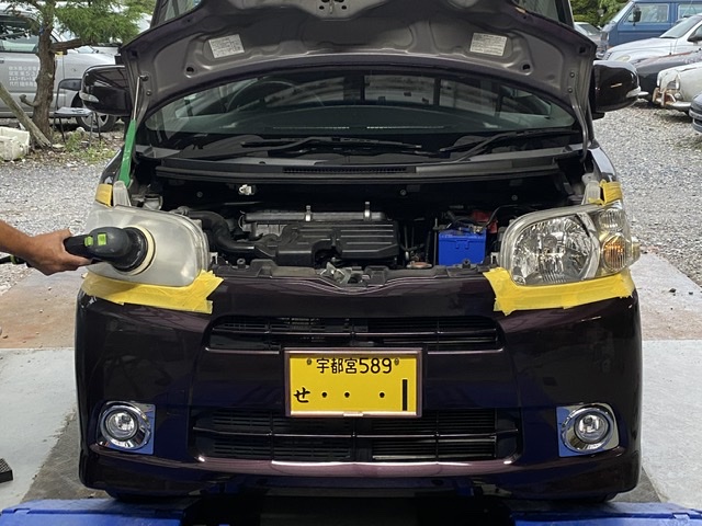 ヘッドライトの表面を研磨して 白濁してしまった表層を除去。 ポリカーボネートな...
