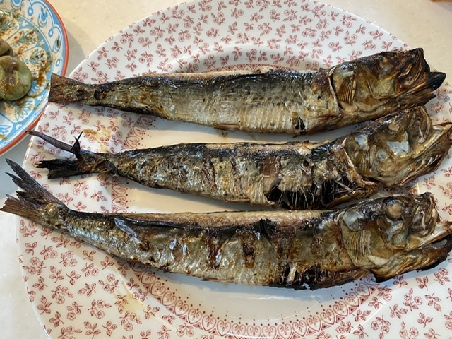 昼飯はイワシとそら豆。 一匹と半分たべて残りは明日の朝にしよう。 大羽イワシ。 ...