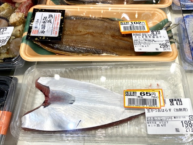 ハラス。初ガツオかな。 塩ふって皮目が少しこげるまで焼いて かじって食べよう☆彡...