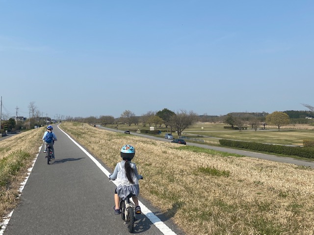 じでんしゃこいで鬼怒川サイクリングロード。 レジャーシート敷いてオニギリ&カッ...