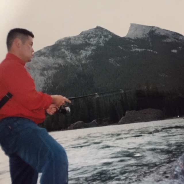 昔の写真。 30歳くらいの俺(゜.゜) パラマウント映画の山をバックにマス釣り。 ...