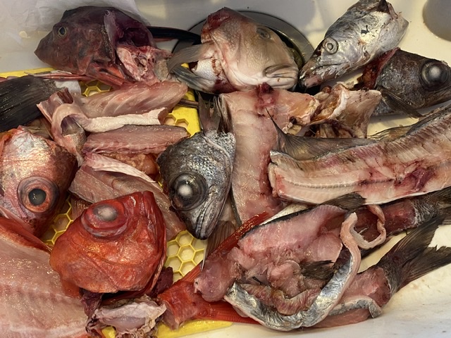 内臓とエラをとって掃除して 2日分のおかずにするべ☆彡 右の鍋はシチュー。 左は甘...