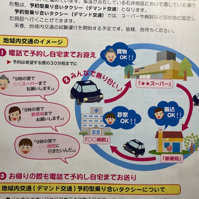 来月(令和2年3月)から 石井町にもついにデマンドタクシーが開通! 9-5時な...