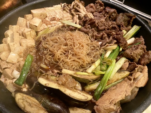 豆腐2丁、しらたき500g、ナス5本、シシトウ5本、ネギ4本、シメジ1パック、牛肉700g...