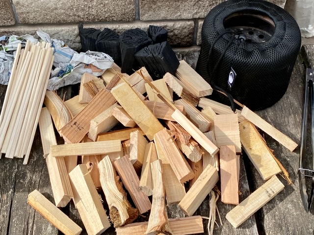 まぁ、これも焚き火みたいなもんだ^_−☆ 感染対策バッチリのよかっぺ特等席。 (炭火...
