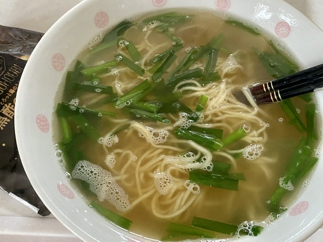 ラ王の乾麺に魚アラの出汁で ニラソバ。 はぁー美味しい(^.^)