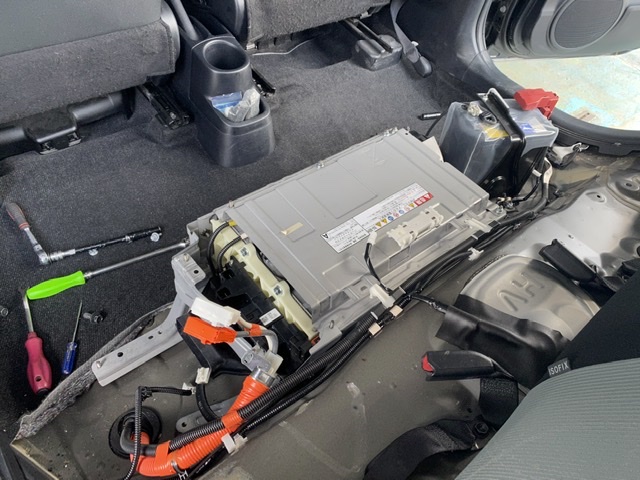これはアクアのハイブリッドバッテリー。 後部座席の下にある。 HVバッテリは15年2...