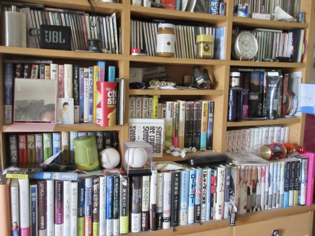 この雑多な本棚。 探し物は見つかりにくいよ。 何気に置いてしまったi-phoneが見つ...