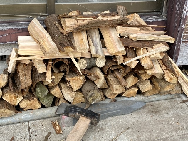 近所の木村くんに薪をわけてもらった\(^o^)/ たぶん杉? 自宅でひとり焚火酒飲み...