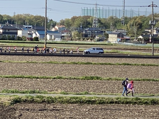 孫たちを見送ってたら 久部街道に長い列。 こどもいっぱいいるなー☆彡 なんかうれ...