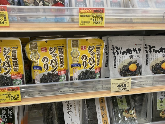 この「ぶっかけ韓国のり」と「ジャバンのり」。 朝ごはんにキムチのっけて、このも...