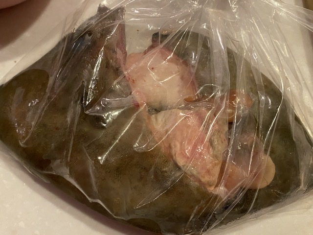 カワハギの頭(キモ付き)☆彡 皮を剥いでエラと内臓とって酒蒸し。 肝がちょっととろ...