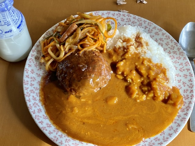 ハンバーグカレーナポリタン付き。 バレンタイン直前の今日はお祝いで いつもより...