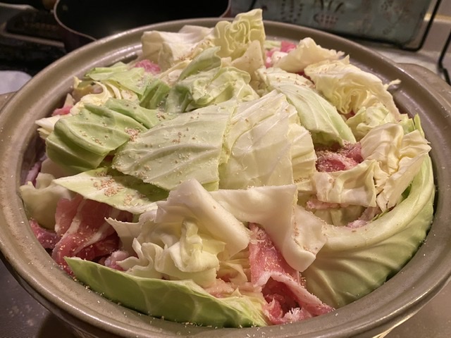 キャベツ丸いっこブタ鍋。 ほんだし、鶏ガラスープの素、ハイミー、砂糖、桃屋のニ...